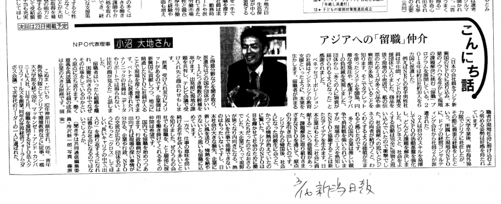 3/16付で新潟日報にも、代表・小沼のインタビュー記事を掲載していただきました