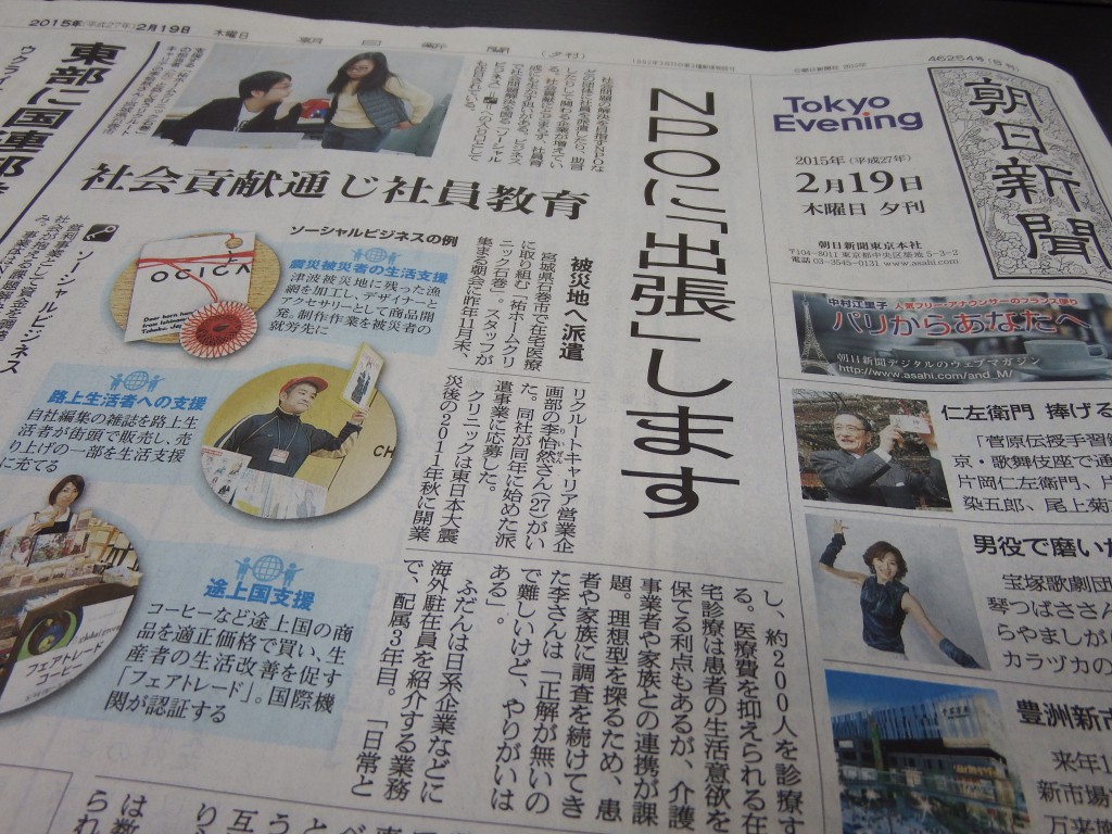 2/19(木)の朝日新聞夕刊一面に、クロスフィールズが取り上げられました