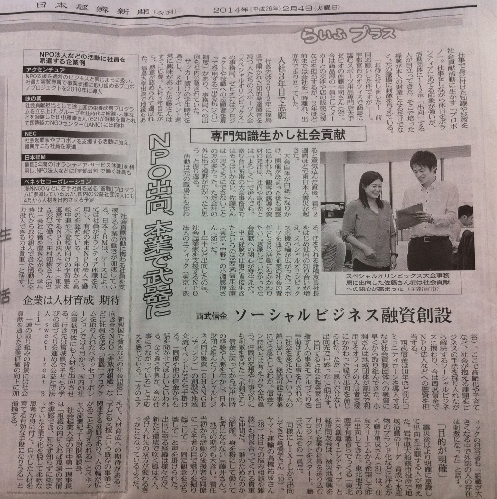 2/4(火)、日経新聞夕刊に“留職”が取り上げられました