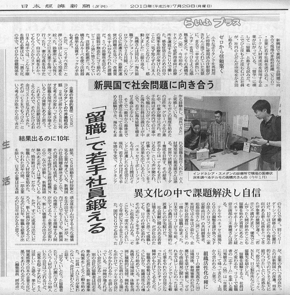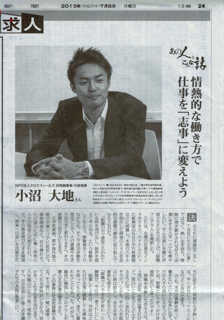 7/29の日経新聞夕刊7面でクロスフィールズの「留職」を特集して頂きました