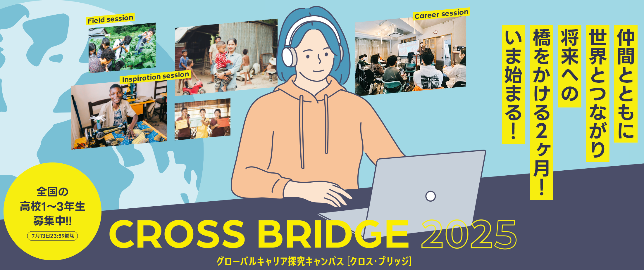 クロスブリッジはみなさまからいただく寄付金を原資に運営しています。全国の高校生が世界の社会課題に触れ、キャリアを描く機会をこれからも居住地によらずに提供していくため、みなさまからの温かいご支援をお待ちしております。