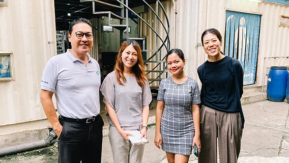 ヒアリングを実施した現地のメンバーとともに映る安川さん(写真左)