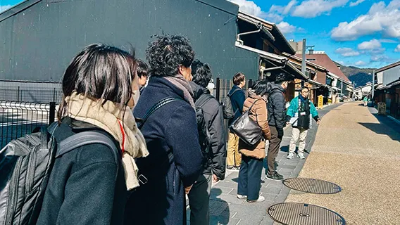 まち歩きを通じて、地域理解を深める参加者の様子。