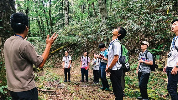 森あるきを通じて、自身のリーダーシップと問い直す参加者の様子