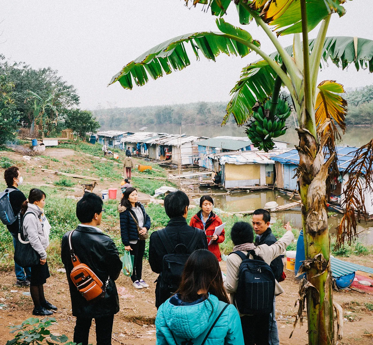 リーダーの話を聞き、現地課題への理解を深める参加者。